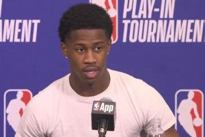 VJ:“泰瑞斯打得非常好。他今晚穿了一双新鞋,挺酷的。但他告诉我们,我们要一直向前看。他早就承诺过我们会打进季后赛,他做到了。”