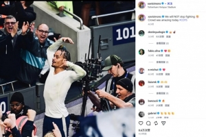 他也在赛后通过社媒晒出自己进球后的脱衣庆祝照,并配文:“我们绝不会停止战斗😤今天的观众太棒了!”