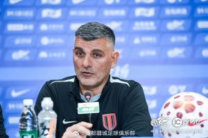 4月20日下午,成都蓉城队主教练约翰・阿洛伊西与队员马特乌斯・茹萨出席成都蓉城vs云南玉昆的赛前新闻发布会。