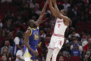 体育资讯4月6日讯 勇士主场迎战火箭,上半场53-55落后2分。