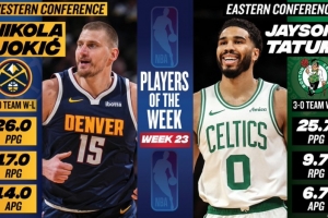 周最佳:约基奇场均三双26分17板14助 塔图姆场均25.7分6.7助