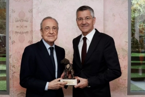 关系好!皇马官方晒老佛爷和海纳合照:同拜仁进行了董事会议