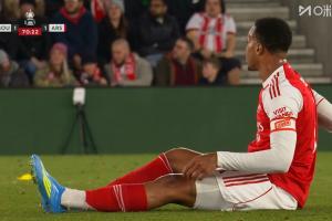第72分钟加布里埃尔因伤无法坚持,萨利巴登场